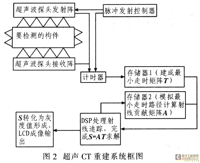 0 為獲得更清晰的圖像檢測(cè)效果,在超聲波波動(dòng)傳播原理的基礎(chǔ)上,采用超聲陣列檢測(cè)方法設(shè)計(jì)超聲層析成像(CT)系統(tǒng)。將射線追蹤算法引入到層析成像中,基于SIRT重建算法,實(shí)現(xiàn)
