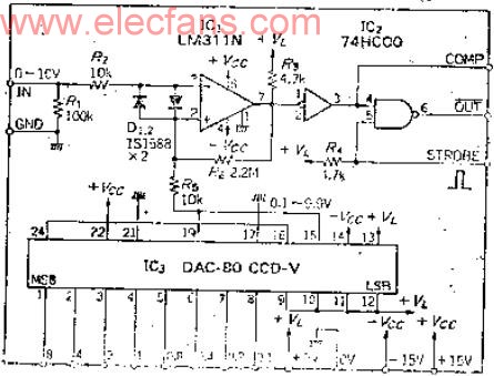 無調(diào)諧電路的數(shù)字式頻率比較器電路圖