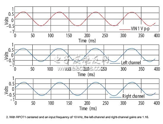 圖1所示為一個(gè)音頻Panpot電路,通過(guò)在左右立體聲聲道之間連續(xù)改變單聲道音頻信號(hào)的位置來(lái)響應(yīng)電位器的設(shè)置。低成本和低失真是音頻電路的重要考慮因素。雙通道低失真差動(dòng)放大器