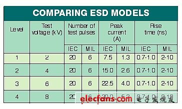 確保IC不受損壞。在為給定的應用選擇最佳保護器件的時候,設計工程師們必須要考慮到ESD保護器件能夠把ESD電壓控制到多么低的電平。 圖1:IEC61000-4-2規(guī)范指標一覽表。 選擇最有效的保護方案