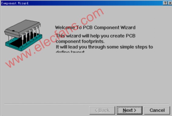 打開“LCD Controller.ddb”設(shè)計(jì)數(shù)據(jù)庫,選中“LCD Controller.pcb”并打開。在“Tools”下選擇“Make Libray”,建立一個(gè)新庫文件“LCD controller.lib”,所有PCB中的器件封裝被自動(dòng)抽取出來,保存在庫文件中。在這個(gè)新庫文件中建立18器件封裝,點(diǎn)擊左側(cè)導(dǎo)航樹上的“Browse PCBlib”,可以瀏覽這個(gè)庫里現(xiàn)有的元件,創(chuàng)建一個(gè)新的元件選擇“Tools”下的“New Component”,彈出一個(gè)器件封裝模板,按照提示,可以迅速生成一個(gè)我們需要的器件封裝。