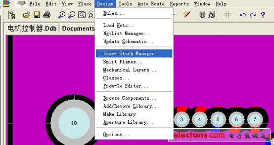 PCB界面中點擊主菜單Design 再點擊Layer Stack Manager 如圖:protel四層板及內(nèi)電層分割入門 點擊后彈出下面的層管理器對話框, 因為在Protel中默認是雙面板,所以,我們