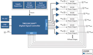 的DSP 處理器,如 TMS320F280x 系列、TMS320F2801x 系列,還有可輸出16通道高精度 PWM 的 DSP 處理器 TMS320F28044。在要求 DC 通道較多的系統(tǒng),用28044