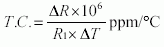 ΔR = the difference between the resistance (R2 - R1) at temperatures T2 and T1 (T2 > T1), respectively