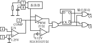 。根據(jù)定頻控制方式分為電壓型和電流型PWM控制,由于電壓型PWM控制方式具有結(jié)構(gòu)簡(jiǎn)單、易于實(shí)現(xiàn)等優(yōu)點(diǎn)被廣泛應(yīng)用。圖1所示是電壓控制型開(kāi)關(guān)電源的原理圖,其中虛框部分是控制芯片內(nèi)部結(jié)構(gòu)。