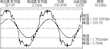 (f)重載Ⅱ:217.6V,12.013A, 2610.56W,PF=0.999