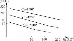 圖2? 75W直流變換器電原理圖 ??? 圖中R1、Q1、R2、Q2、C2、C3、R4為啟動開關(guān)控制電路,同時Q1可防止啟動浪涌電流,由于Q1導(dǎo)通電阻很小,其功耗優(yōu)于晶閘管和晶體管。Co、L1、C1組成EMI電路,防止變換器對電網(wǎng)干擾。R1、R5、R6、D2、D3、C5、C6、Q3是IC1啟動工作電路。在電路通電后,D2穩(wěn)壓管給出15V電壓,由R6、Q3、C5給UPC1099供電,使變換器輸出。此時P2線圈通過D3、C6供給IC1所需的大電流。同時IC1的供電電壓是固定的。這樣其工作的波紋很平穩(wěn),輸出噪聲很小。C10、R15設(shè)定工作頻率。脈沖信號通過R7、R8控制Q4振蕩工作,經(jīng)P1至S1副邊電壓整流濾波輸出。雙肖特基二極管D4作為副邊繞組S1的整流二極管。L2為貯能濾波電感。C12、R17組成濾波器,其中C12為片式特質(zhì)高分子鋁電解電容,它的高頻特性相當好,優(yōu)于多層超陶電容和片式鉭電容,400kHz下?lián)p耗電阻僅為0.09Ω。輸出+5V電壓經(jīng)R26、R27取樣與IC2比較通過IC3電壓控制電路反饋電壓加在誤差放大器輸入腳2,控制脈寬平穩(wěn)輸出。R11、R12、C8作為死區(qū)時間設(shè)定,C8也是軟啟動電容。過電流由串接在Q4源極電阻R9檢測,信號經(jīng)限流電阻R10加到IC1過流端腳7進行保護。 ??? 下面按特色功能作一介紹。 ??? 1)內(nèi)部抗干擾吸收網(wǎng)絡(luò) ??? 圖2電路中有多處吸收網(wǎng)絡(luò)以使整個電路功耗降低,噪聲干擾小,避免電路自激。R17、C12為變壓器原邊P1的吸收網(wǎng)絡(luò),減小對MOS管反壓過沖和開關(guān)功耗。R19、R20、C14、C15為變壓器副邊S1的吸收網(wǎng)絡(luò),減小肖特基二極管的沖擊和修整波形,使輸出噪聲降低。R23、C18、R25、C19為吸收補償網(wǎng)絡(luò)使反饋相位更易同步,減小自激。R18、C13為輸入輸出間吸收網(wǎng)絡(luò),可降低輸出噪聲。Co、L1、C1為EMI電路。 ??? 2)平滑防振網(wǎng)絡(luò) ??? 平滑防振網(wǎng)絡(luò)主要是保證工作狀態(tài)下性能穩(wěn)定。C1、C4為輸入濾波平滑電容。C2、C3為啟動開關(guān)濾波電容及啟動延遲。C5、C6、C9為IC1的電源濾波和基準電壓濾波。C7、C11對于過壓過流起平滑作用。R22防止輸出過載時IC2電流過小的偏置網(wǎng)絡(luò)。R32同理。R28、R29防止空載時自激振蕩。R24、D5為啟動抗沖擊保護電路。 ??? 3)保護電路 ??? IC1的腳7為過電流關(guān)閉端,當電壓達到200mV時,MOS管Q4就會逐漸關(guān)斷。一旦關(guān)斷,則腳7電壓降到0V。 ??? IC1的腳12為過電壓關(guān)閉端,輸出過壓經(jīng)R30、R31取樣與IC4比較放大通過IC5反饋至腳12上,使電流經(jīng)R16升壓,當電壓為2.4V時,腳9停止輸出,電壓馬上下降。如果要解除過壓關(guān)閉則電壓必須降至2V以下,而且電源要重新啟動(ON/OFF)一次。 ??? 4)振蕩電路 ??? 振蕩頻率由腳15、16接的R15、C10決定。R15、C10對頻率的影響如圖3所示。
