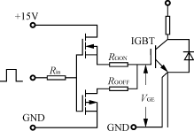 圖2??? 主控制電路原理框圖 1.3??? 驅(qū)動(dòng)電路 ??? IGBT的柵極驅(qū)動(dòng)電壓可由不同的驅(qū)動(dòng)電路提供,選擇驅(qū)動(dòng)電路時(shí),應(yīng)考慮驅(qū)動(dòng)電路的電源要求,器件關(guān)斷偏置的要求,柵極電荷的要求,耐固性要求,保護(hù)功能等因素。驅(qū)動(dòng)電路的性能不僅直接關(guān)系到IGBT器件本身的工作性能和運(yùn)行安全,而且影響到整個(gè)系統(tǒng)的性能和安全。 ??? 德國(guó)西門(mén)康(SEMIKRON)公司生產(chǎn)的SKM系列IGBT功率模塊,在芯片制造工藝、內(nèi)部布局、基板選擇等方面有獨(dú)到之處,不必使用RCD吸收電路,SOA(安全工作區(qū))曲線為矩形,不必負(fù)壓關(guān)斷,并聯(lián)時(shí)能自動(dòng)均流,短路時(shí)電流自動(dòng)抑制,開(kāi)關(guān)損耗不隨溫度正比增加,正溫度特性曲線。鑒于此,選用西門(mén)康公司的SKM系列IGBT作為逆變電源的主功率開(kāi)關(guān)器件。為充分利用IGBT的優(yōu)良性能,保證系統(tǒng)能安全可靠地工作,驅(qū)動(dòng)電路也選用西門(mén)康公司的SKHI系列驅(qū)動(dòng)器。該系列驅(qū)動(dòng)器只需一個(gè)非隔離的+15V電源;具有高dv/dt容量;保護(hù)功能完善;故障記憶,通過(guò)ERROR信號(hào)告知控制系統(tǒng);上下互鎖,避免同一橋臂兩只IGBT同時(shí)開(kāi)通;柵極電阻外部可調(diào),使得使用不同功率容量的IGBT時(shí)都能工作于較高的開(kāi)關(guān)頻率,并得到高的轉(zhuǎn)換效率。 ??? 作為電壓型控制的IGBT不需要柵極驅(qū)動(dòng)電流,但由于柵極輸入端有一個(gè)大電容,使在驅(qū)動(dòng)時(shí)形成一很窄的脈沖柵極驅(qū)動(dòng)電流,且IGBT容量越大,該脈沖電流的峰值越大,例如,200A/1200V的IGBT的開(kāi)通電流的脈沖峰值約達(dá)到1.5A。SKHI驅(qū)動(dòng)器既能承受這種高峰值柵極電流又不降低VGE。為?高開(kāi)通和關(guān)斷速度,減少驅(qū)動(dòng)器損耗,SKHI驅(qū)動(dòng)器的輸出級(jí)采用MOSFET對(duì)管以減少連接線路上的電阻。影響開(kāi)關(guān)速度的另一個(gè)重要因素是柵極電阻RG,減小RG可以降低IGBT的開(kāi)關(guān)損耗,但由于雜散電感的存在,使得IGBT關(guān)斷時(shí)的集射極間的尖峰電壓增大,SKHI驅(qū)動(dòng)器將RG分成RGON和RGOFF(見(jiàn)圖3),這樣兩個(gè)參數(shù)可分別控制,并可根據(jù)IGBT容量的不同,分別調(diào)整RGON和RGOFF,以獲得最佳驅(qū)動(dòng)效果。