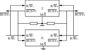 圖1??? 主從連接電路 ??? 主芯片的BUSY信號接上拉電阻作為輸出,從芯片的BUSY信號作為寫禁止輸入,當主芯片處于BUSY狀態(tài)時,從芯片接收這個狀態(tài),同樣處于忙狀態(tài),從而避免了死鎖的發(fā)生。 ??? 中斷邏輯??? 另一個重要的內(nèi)部電路結(jié)構(gòu),它允許雙CPU通過端口直接進行通信。CY7C025最高位的存儲單元1FFF作為右邊端口的中斷信箱, ??? 次高位存儲單元1FFE作為左邊端口的中斷信箱。各CPU可以讀取雙方的中斷信箱,但只能寫對方的中斷信箱。當一端寫入對方的中斷信箱時,對方就會產(chǎn)生一個中斷信號;讀自己的中斷信箱則清除自己的中斷信號,讀對方的中斷信箱不會清除中斷信號。 ??? 旗語通信邏輯??? 可以使雙口RAM暫時指定一塊存儲區(qū),只供一端的CPU使用,稱之為獨占模式。CY7C025配置了獨立于RAM陣列的8個旗語鎖存器,用于標志雙口RAM是否處于獨占模式。獨占模式也可以用來避免地址仲裁問題,因為,它是一種使兩邊不同時使用同一地址的方法,通常也叫做軟件仲裁。 ??? 控制平臺結(jié)構(gòu)框圖如圖2所示。