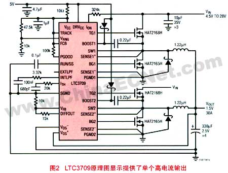 ltc3708和ltc3709系列顯示了上述的重要差異,見(jiàn)圖1和圖2。