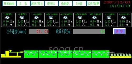 ???????? 化纖柔性生產(chǎn)線簡(jiǎn)介:化纖柔性生產(chǎn)線是化纖絲生產(chǎn)中的一種重要的生產(chǎn)線,它的結(jié)構(gòu)包括擠出機(jī),計(jì)量泵,分絲盤,水箱,牽伸輥機(jī)(包括加熱和不加熱),導(dǎo)輪,冷卻箱,力矩輥機(jī)和收絲機(jī)。在加工時(shí),將化纖顆粒放入擠出機(jī)漏斗,經(jīng)過(guò)擠出機(jī)加熱擠出并在分絲盤將化纖溶體分成幾百束的初級(jí)化纖絲后經(jīng)水冷卻,然后將化纖絲幾十根為一把經(jīng)過(guò)導(dǎo)輪纏繞在各牽伸輥機(jī)上逐級(jí)拉伸后變成很細(xì)的化纖絲成品卷繞在收線盤上。從最初的化纖絲到成品之間化纖絲的初細(xì)就靠各輥機(jī)運(yùn)行速度的逐漸加快來(lái)確定,具體的快慢由牽伸比設(shè)定,不同的產(chǎn)品牽伸比不同。