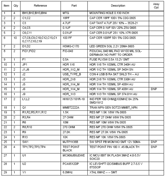 KITUSBI2CEVME材料清單(BOM):