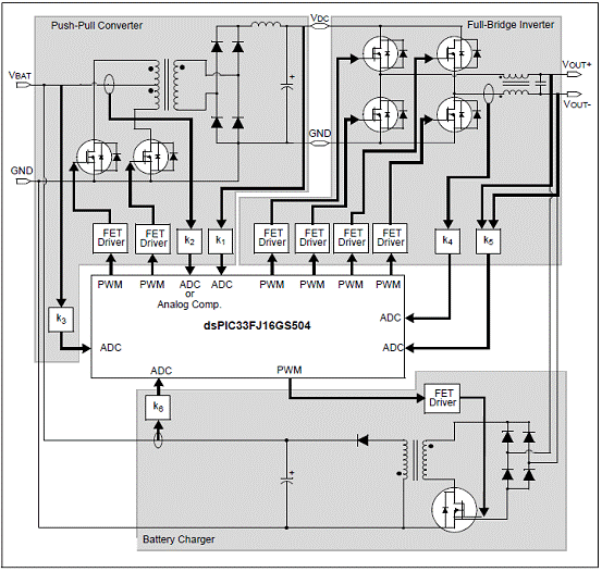 圖10。dsPIC33FJ 相移全橋(PSFB)轉(zhuǎn)換器框圖