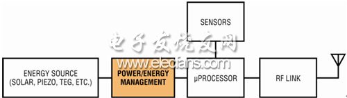 測量和控制所需的超低功率無線傳感器節(jié)點的激增,再加上新型能量收集技術(shù)的運用,使得由局部環(huán)境能量而非電池供電的全自主型系統(tǒng)成為可能。利用環(huán)境或“免費”能量來為無線傳感器節(jié)點供電是很有吸引力,因為它能