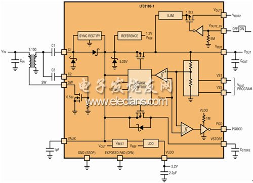 Linear 公司的LTC3108是超低電壓建立的轉(zhuǎn)換器和功率管理器,它的高度集成DC/DC轉(zhuǎn)換器非常適合用作低輸入電源如熱電發(fā)生器,熱電堆和小型太陽能電池的能量收集