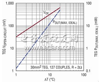 圖 10:典型 TEG 的開(kāi)路電壓及最大功率輸出