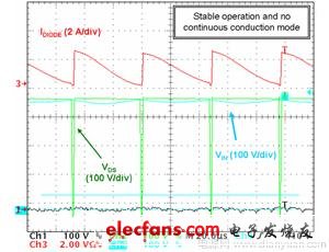 出現(xiàn)一些人耳可聽到的噪聲。能夠使用一顆簡(jiǎn)單的電阻來(lái)改善這功能。其次,在啟動(dòng)序列期間,PFC段也可能呈現(xiàn)出過(guò)大的過(guò)沖??梢栽诜答伕袦y(cè)網(wǎng)絡(luò)中放置一顆電容來(lái)限制或抑制這過(guò)應(yīng)力。即便是在電源設(shè)計(jì)的極晚階段,這兩種調(diào)整方法都易于實(shí)施。
