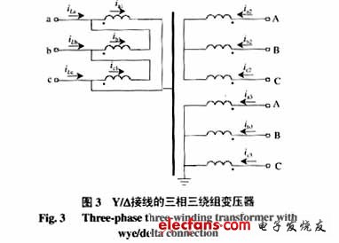 52 基于勵(lì)磁電感參數(shù)識(shí)別的變壓器 勵(lì)磁涌流 判別方法是基于單相雙繞組變壓器模型提出的,無法應(yīng)用于不能直接測量?接線側(cè)繞組相電流的三相變壓器。本文對(duì)此算法進(jìn)行了改進(jìn),使其