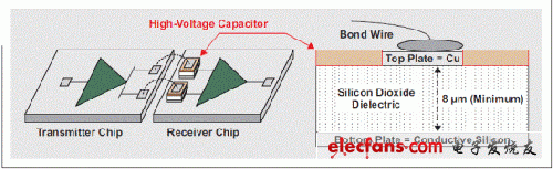 層進行傳輸,通過數(shù)字調(diào)制和電容耦合隔離方式保持信號的完整性,使得數(shù)字信號通過容性隔離層還能提供出色的可靠性和優(yōu)越的高頻瞬變抗擾性。