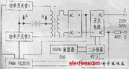 19 正弦逆變電源:輸入范圍DC10~14V,輸出Vo=AC220V,輸出額定功率Po=200W,效率η≥80%的電路圖,完全用硬件來(lái)實(shí)現(xiàn)的