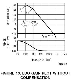 假設內部的補償在1kHz處添加了一個極點。由于PNP功率管和驅動電路的存在,在500kHz處會出現(xiàn)一個功率極點(Ppwr)。