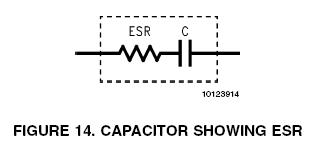 等效串聯(lián)電阻(ESR)是電容的一個基本特性??梢詫㈦娙荼硎緸殡娮枧c電容的串聯(lián)等效電路(圖14:電容器的等效電路圖)。