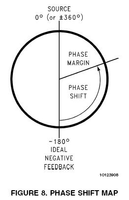 相位偏移就是反饋信號經(jīng)過整個回路后出現(xiàn)的相位改變(Phase Change)的總和(相對起始點)。相位偏移,單位用度(Degrees)表示,通常使用網(wǎng)絡分析儀(network analyzer)測量。理想的負反饋信號與源信號相位差180°(如圖8:相位偏移示意圖),因此它的起始點在-180°。在圖7中可以看到這180°的偏置,也就是波型差半周。
