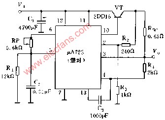 A723構(gòu)成的擴流型穩(wěn)壓電路
