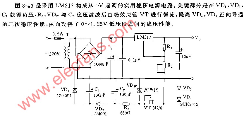 采用LM317制作的從0V起調(diào)的電源資料下載