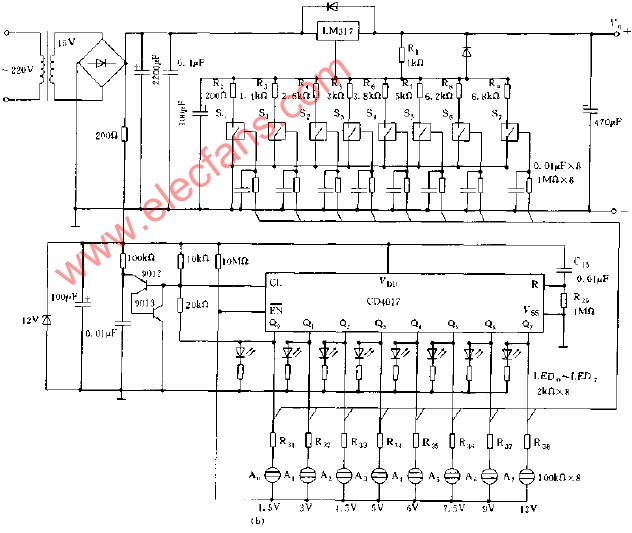 8檔輸出的數控可調穩(wěn)壓電源電路