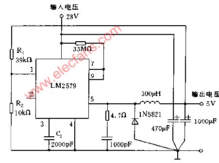 采用LM2579構(gòu)成的降壓穩(wěn)壓器電路