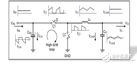 在計(jì)算損耗前,需要先了解MOSFET在同步降壓穩(wěn)壓器中的工作機(jī)制。圖1所示為簡(jiǎn)化的穩(wěn)壓器的功率電路原理圖,其中Q1為控制管,Q2 為同步管。
