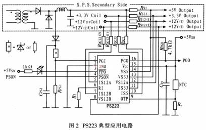 PS223典型應(yīng)用電路如圖2所示。