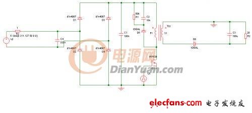 現(xiàn)在以最簡(jiǎn)單的,具有PFC功能的DCM 反激電源為例子,(如上圖)