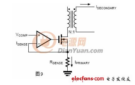 在閉環(huán)系統(tǒng)中,VCOMP與ISENSE維持同樣的電平。因此,IPRIMARY被VCOMP有效的調(diào)節(jié):