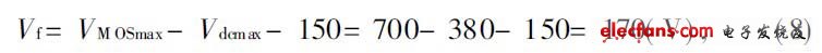 因?yàn)樗x的MOS 管的最大耐壓值V MOSmax= 700 V.在150 V 裕量條件下所允許的最大反射電壓: