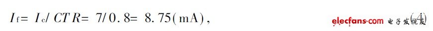 PC817 的電流傳輸比CTR= 0. 8~ 1. 6, 當(dāng)I c= 7mA 時(shí), 考慮最壞的情況, 取CT R= 0.8, 此時(shí)要求流過(guò)發(fā)光二極管最大電流: