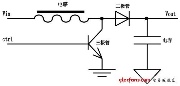 當電感電流增加到一定程度,用ctrl關閉三極管。則電感電流的回地的路就被切斷。同樣由于電感電流不能突變,因此,電流就會通過二極管流向電容。這樣就完成一次電感通過二極管給電容充電的過程。Ctrl信號周期性不停止的復現(xiàn),宏觀上就形成從vin不斷流向電容的電流。這個過程與vout和vin電壓孰高孰低無關。意味著可升壓,也可降壓。