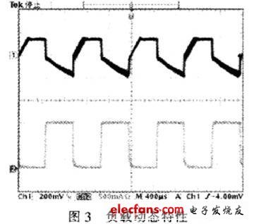 根據(jù)圖l構(gòu)成的應(yīng)用電路,1個單節(jié)鋰電池充電器的測試數(shù)據(jù)如表l、表2所示。圖3為電流的瞬態(tài)特性圖。