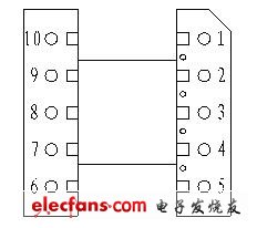 2:有了這些參數(shù)后就可以繞制變壓器了,在繞制變壓器之前先給骨架的腳編上一個號碼,例如我們現(xiàn)在需要繞制一個輸入電壓是+24V,輸出1是+9V,輸出2是+15V的變壓器,要求2輸出端的功率都為1.5W,那么這個變壓器的繞制方法如下: