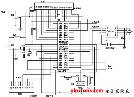 打印機(jī)和單片機(jī)之間采用串行通訊,占用AVR本身的URAT串行口。時(shí)鐘芯片DS1302則用普通IO口作為串行口和單片機(jī)之間實(shí)現(xiàn)串行通訊。