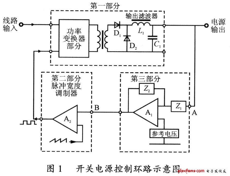 如圖l所示為開關(guān)電源控制方框示意圖,開關(guān)電源控制環(huán)路由以下3部分構(gòu)成。