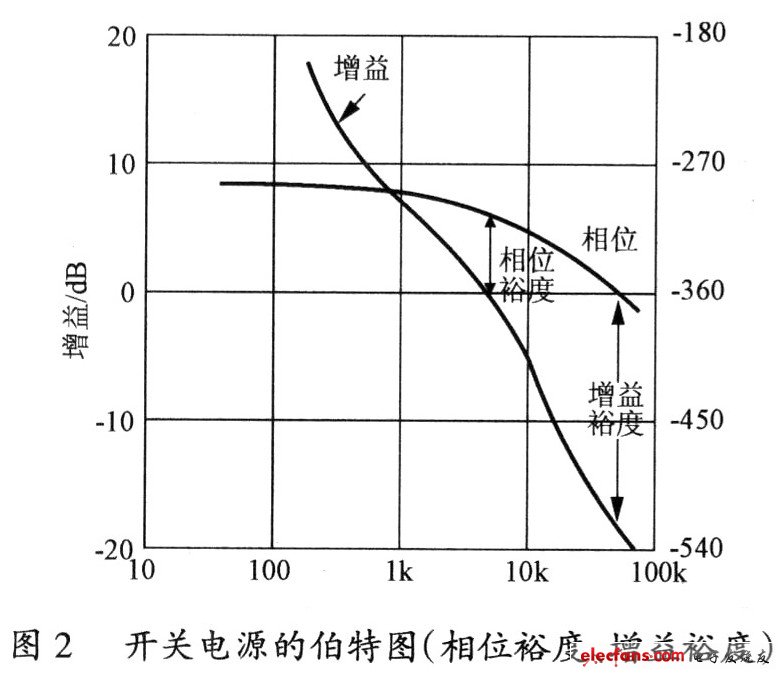 衡量開關(guān)電源穩(wěn)定性的指標是相位裕度和增益裕度。相位裕度是指:增益降到0dB時所對應(yīng)的相位。增益裕度是指:相位為零時所對應(yīng)的增益大?。▽嶋H是衰減)。在實際設(shè)計開關(guān)電源時,只在設(shè)計反激變換器時才考慮增益裕度,設(shè)計其它變換器時,一般不使用增益裕度。
