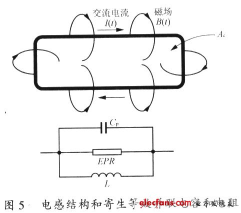 在開(kāi)關(guān)電源中電感的Cp應(yīng)該控制得越小越好。同時(shí)必須注意到,同一電感量的電感會(huì)由于線圈結(jié)構(gòu)不同而產(chǎn)生不同的Cp值。圖7就顯示了同一電感量的電感在二種不同的線圈結(jié)構(gòu)下不同的Cp值。圖7(a)電感的5匝繞組是按順序繞制。這種線圈結(jié)構(gòu)的Cp值是l匝線圈等效并聯(lián)電容值(C)的1/5。圖7(b)電感的5匝繞組是按交叉順序繞制。其中繞組4和5放置在繞組1、2、3之間,而繞組l和5非常靠近。這種線圈結(jié)構(gòu)所產(chǎn)牛的Cp是1匝線圈C值的兩倍。