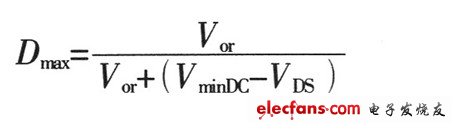 MOSFET開關(guān)管工作的最大占空比Dmax: