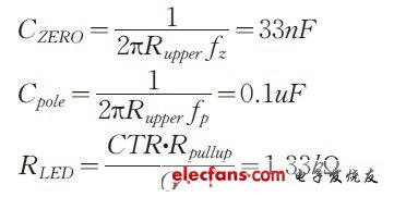 交叉頻率=1kHz;需要的相位裕度=70o;交叉頻率處增益衰減Gfc=-20dB;交叉頻率處的相位=-55o,K 因子計算為:k=4.5;fz=222kHz;fp=4.5kHz;G=10;CTR=0.8.