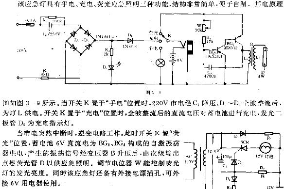 這里介紹一個簡單、實用的應(yīng)急燈的制作。它可以在停電時自動實現(xiàn)切換供電。正常供電時,自動對后備蓄電池充電,并