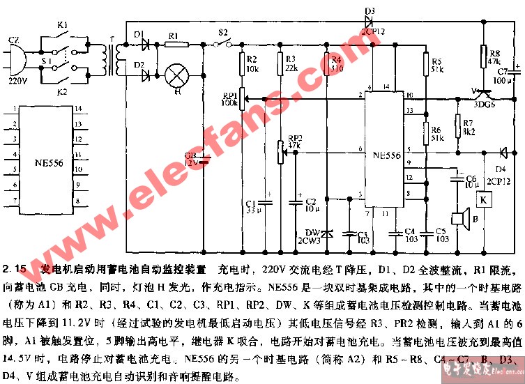 發(fā)電機啟動蓄電池全自動監(jiān)控裝置電路圖