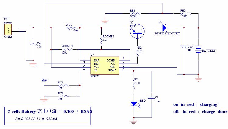 FS3871 是富晶半導(dǎo)體公司生產(chǎn)鋰電池充電管理芯片,FS3871 芯片適合單節(jié)(4.2V)或雙節(jié)(8.4V)鋰離子(Li-Ion)和鋰聚合物(Li-Pol)電池的充電需要,利用該芯片設(shè)計的充電器外圍電路及其簡單
