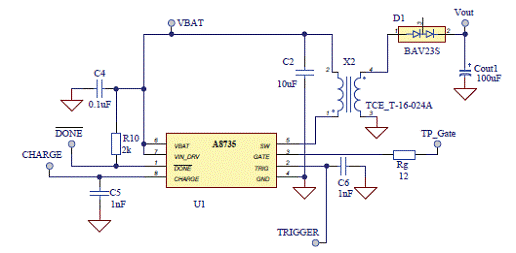 TI推出的TPS65552A極大地簡化設(shè)計并縮小了相機閃光燈充電器電路的尺寸。圖1就顯示了一款基于這種器件的閃光燈電容器充電器。TPS65552A提供了所有必需的充電控制、輸出反饋、充電完成狀態(tài)、絕緣柵雙極晶體管(IGBT)驅(qū)動器,以及實施一個小型、高效閃光燈充電器所必需的一些電路保護。